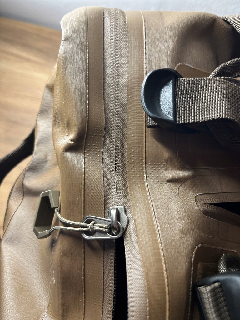 - Specjalne, hermetyczne zamki błyskawiczne – tkanina bazowa pokryta wodoodporną warstwą, a szczelina między zębami zamka minimalna i zakryta spiralą, co zwiększa ochronę przed wodą i kurzem
