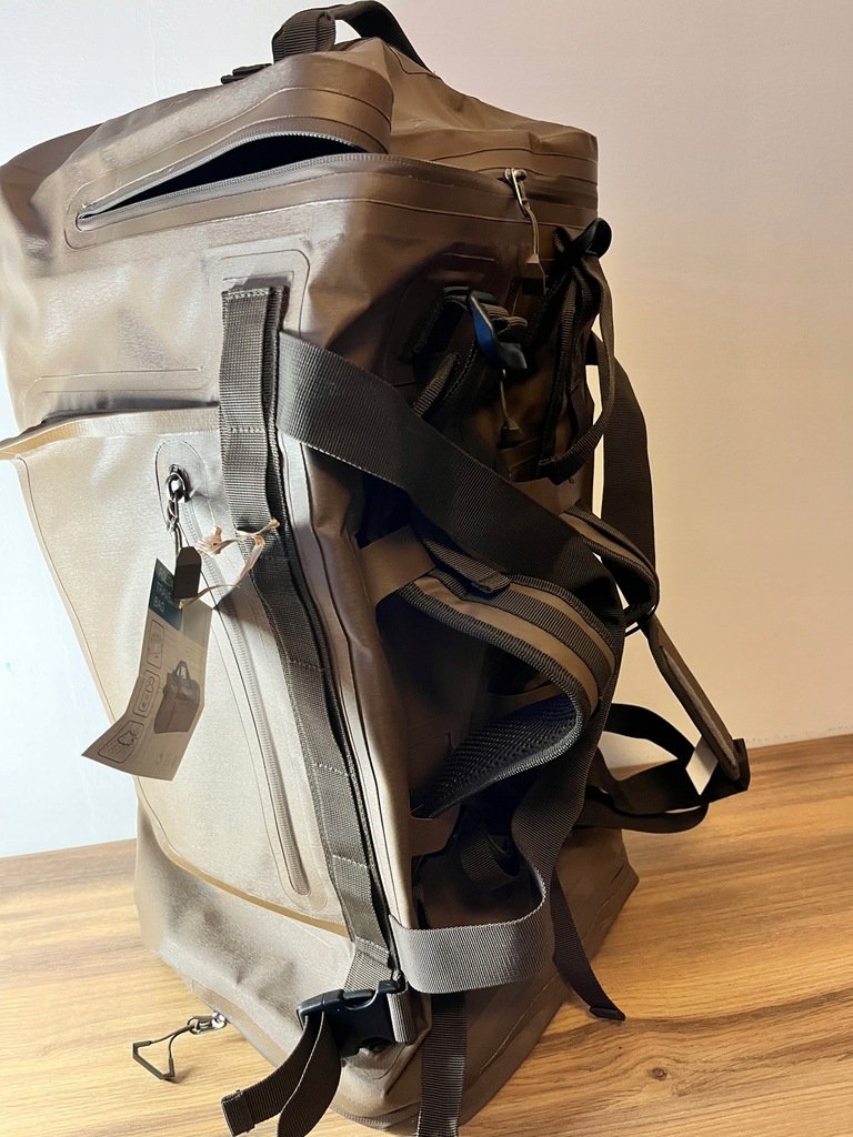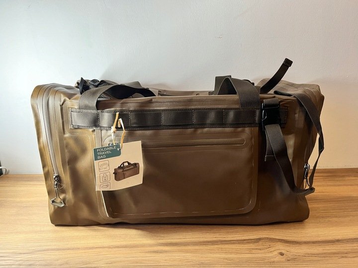 Wytrzymała i pojemna torba turystyczna o składanej konstrukcji – idealna na podróże, kemping, wędkarstwo, siłownię lub weekendowe wypady. Wykonana z trwałego materiału 600×300D Tarpaulin z powłoką PVC, zapewnia odporność na przetarcia i wilgoć.